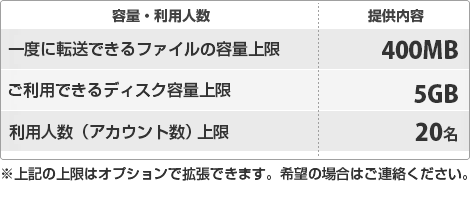 月間のファイル転送の総容量が20GB以上をご希望の場合は、ご要望の転送量をお聞かせください。